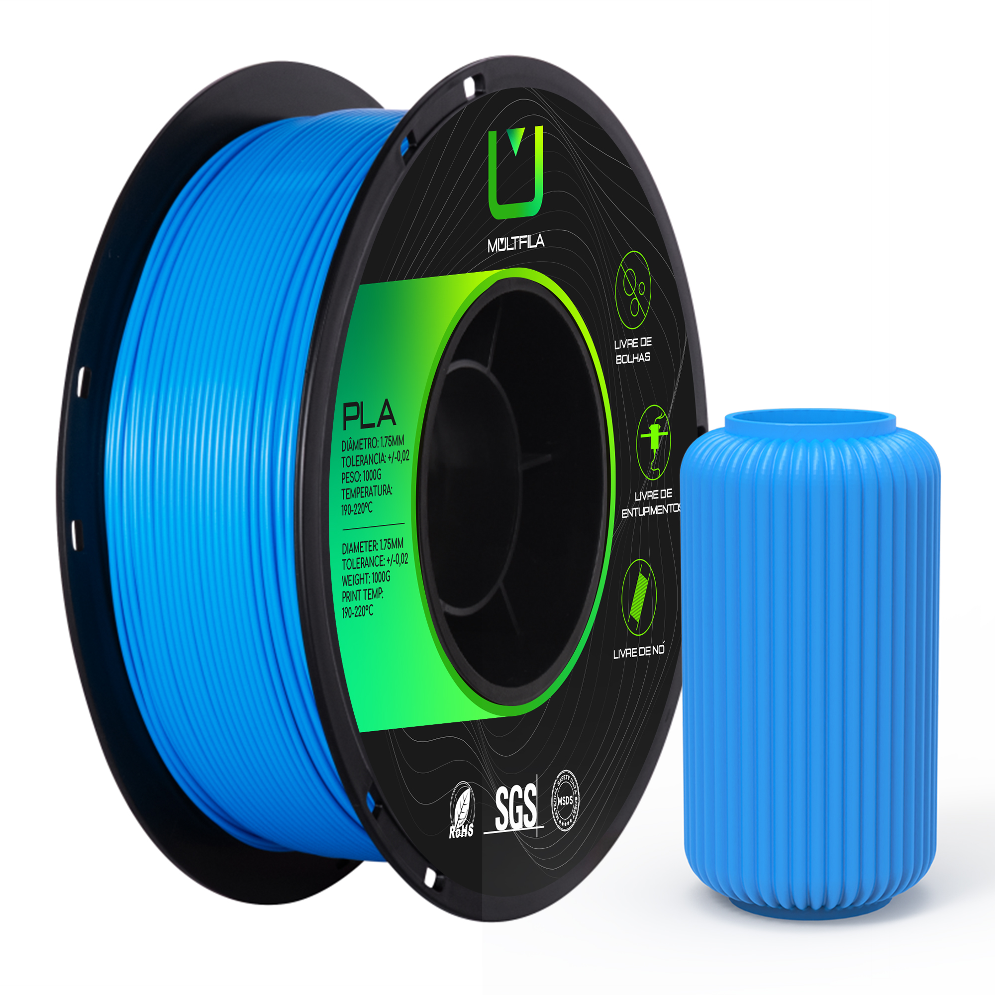 Filamento MultFila Impressora 3D PLA Azul 1kg