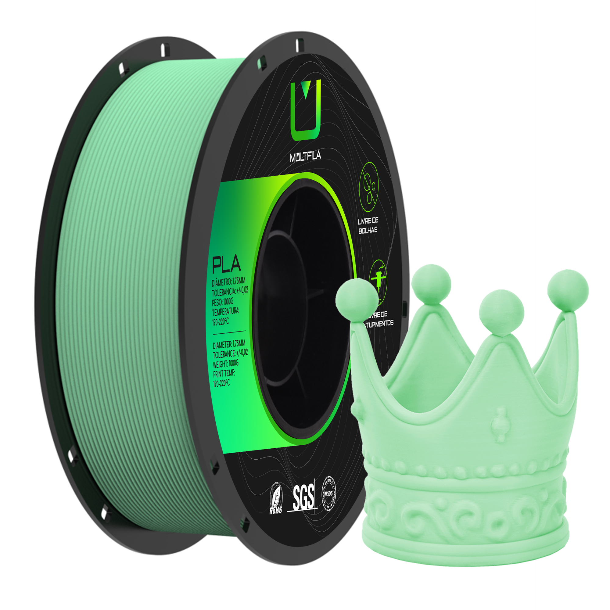 Filamento MultFila Impressora 3D PLA Matte Verde Menta 1kg